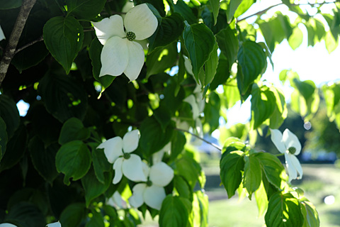 街路樹の…と言っても田んぼの中の道だが…やまぼうしが白い花をつけ始めた。