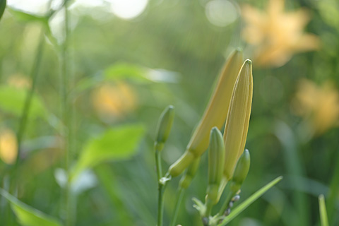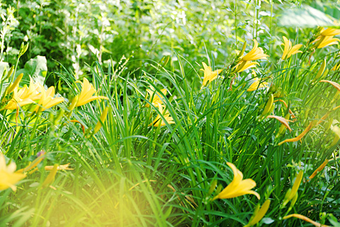 霧ヶ峰…なーんて、これも庭のニッコウキスゲ。去年は2、3輪だったのが、今年は草刈りのときに気を付けていたらこんなに群生した。