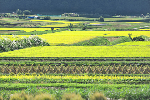 蕎麦の花は早や色褪せて、黄金色の田んぼも苅田が目立つようになった。