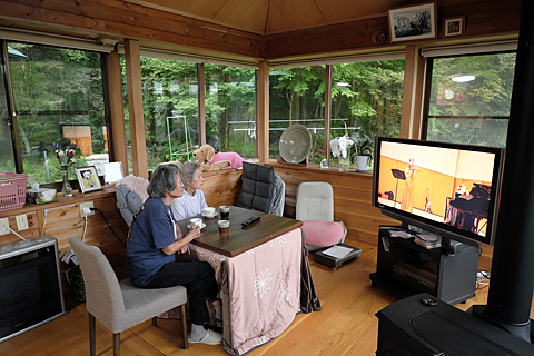 3日とも雨は降らないまでも天気が悪く、八ヶ岳も甲斐駒も一度も姿を見せなかった。山の景色を楽しんでいただけなかったことばかりは残念であった。義母たちをバス停に送った帰り道の車で、なおみはぱたりと寝て買い物する間もぐーぐーと寝続けた。