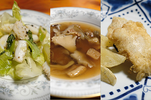 冷凍イカとレタスのサラダは動画を見せながら思いついた。ポルチーニとセロリのコンソメは朝から仕込んでおいた。カボチャと厚揚げのミートソース和えは写真を撮り損ねた。安定のパンガシウスのフィッシュアンドチップス。自分で言うのもなんだがコストパフォーマンスがとても高い。