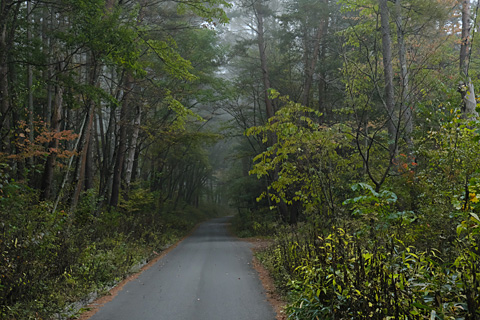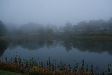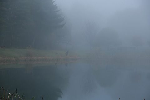 朝、霧の中をまたまるやち湖までウォーキングした。