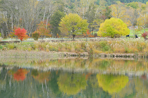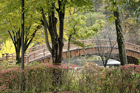 園内の木々はそこそこ色づいているが森全体としてはまだ初秋の候である。