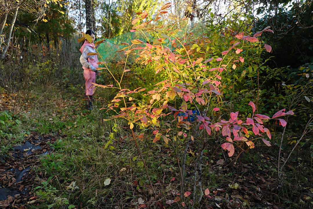 ブルーベリーのネットも外す。