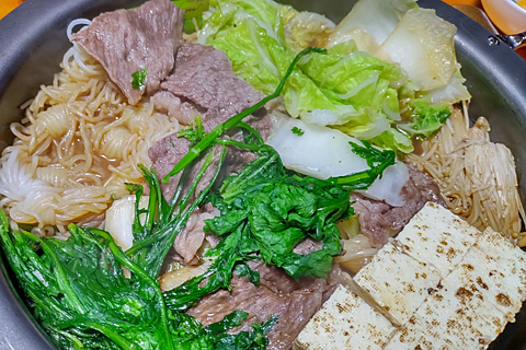 夜は地域振興券の和牛ですき焼きにした。