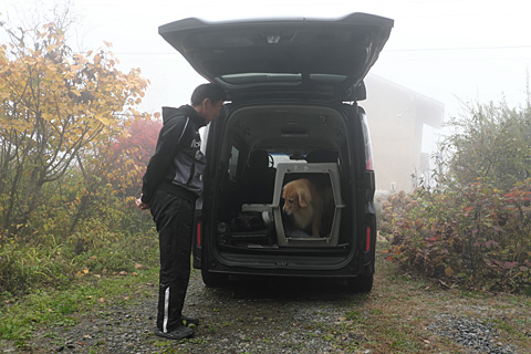 クルトパパはさすがにキャンプ場の予約はしていなかったが、遠慮して庭に停めた車に泊まった。天気も悪いし後ろ脚の具合が悪いのでクルトは早くに帰ることになった。