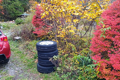 オートパルに組替を頼んでおいたオーリスのスタッドレスを取りに行く。