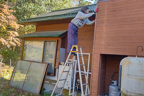 夜になると1Fの天井裏でどどどどっとネズミの走る音がする。もしかしたら屋根の上かもしれない。念のため軒下の空気穴を確認することにした。いちばん大きな梯子をかける。これはさすがに危ないのでなおみが下で支えられる土曜日となった。なおみは奇跡的にオケも部活もない。完全休日となっていた。