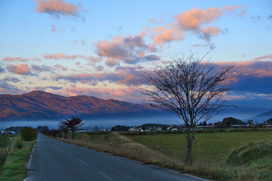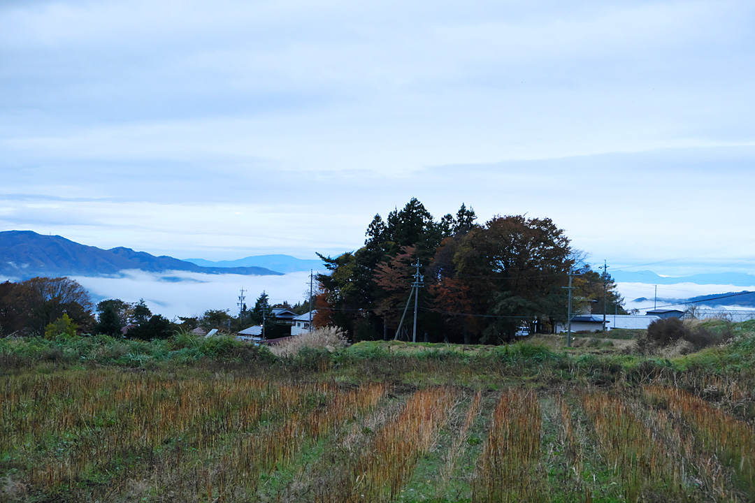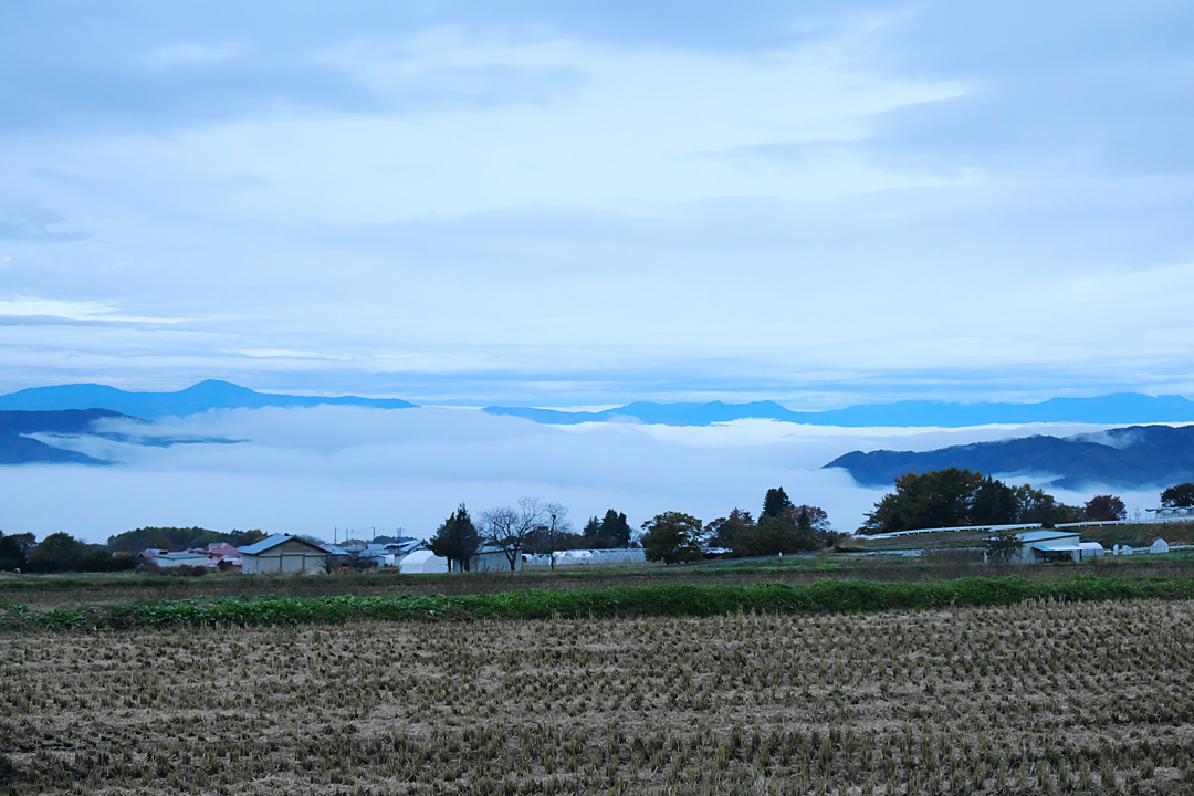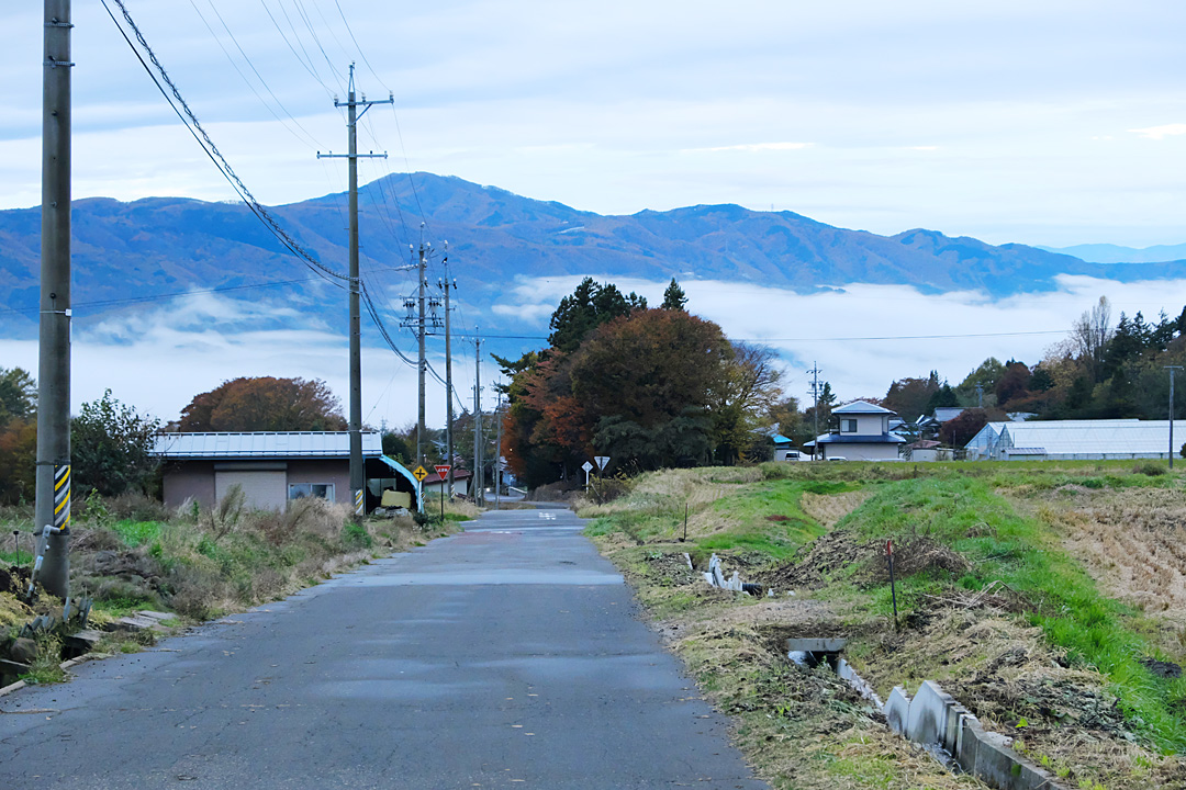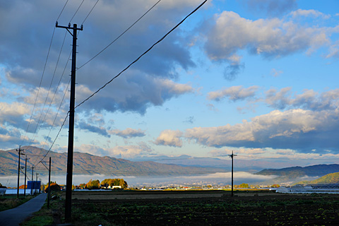 いつものように出勤するなおみの車に乗ってウォーキングに出た。諏訪盆地がすっぽりと霧の中だった。
