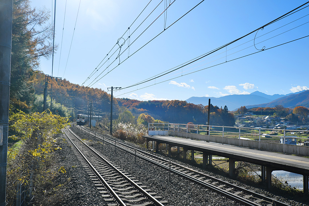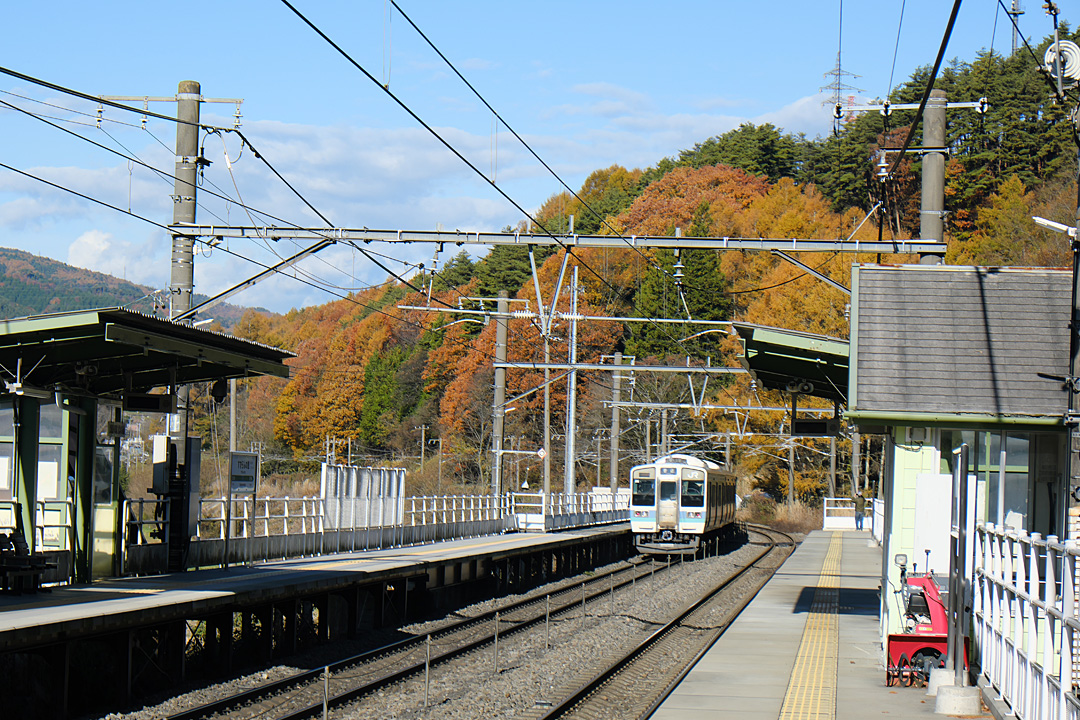前夜も仕事の後に深夜まで練習があったのでバイオリンは置いてきている。パートリーダーとしての責任も重いようだ。見送る無人駅は盛秋の中。
