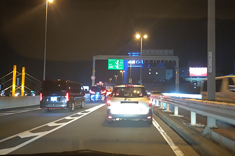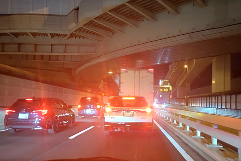 首都高はふつうに渋滞。レーンを細かく選ばないと15分くらい時間が違ってしまう。