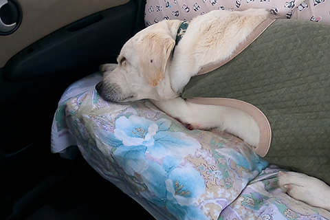 朝食を食べさせようと今井めぐみの里で下ろすと、左半身が血まみれだった。動転して叫んでしまったが、出血は左ひじのおできからだった。