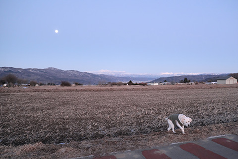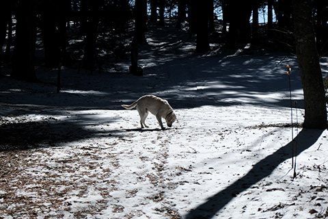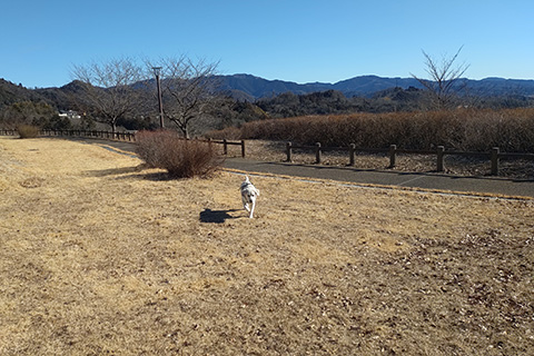 パーマもするので1時間半ほど待つ間、買い物などではローリィが不憫である。放してやれるところを求めて永明山を登ってみた。今年は雪が少ないのでずいぶんと上がっていける。