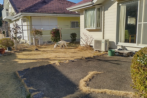 家の中も庭も我が物顔で過ごすローリィ。タローと来たときは遠慮していて損をした。
