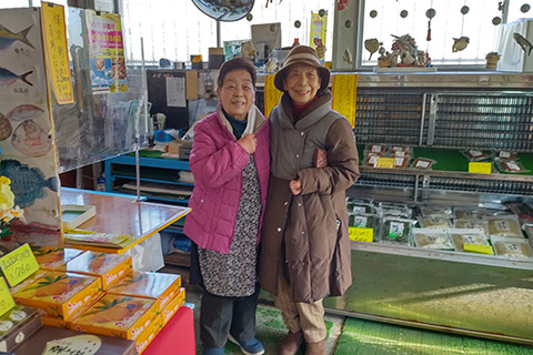 パンさんの奥さんは常連で魚屋の奥さんと顔見知りである。