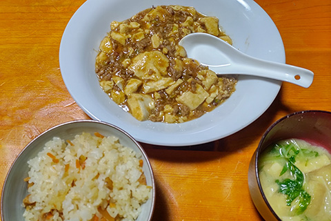 祥月命日は父が好きだった麻婆豆腐を作る。花を見ても麻婆豆腐を食べても母の反応がないので「今日は命日だよ」と話すとようやくそれと気づいた。今日はアタマの調子がよくない日だった。ふだんはこれほどではない。