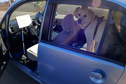 ローリィはもうすっかり慣れたもの。ただ、外に出してやれないので途中2度も役場の駐車場まで走って散歩させる。