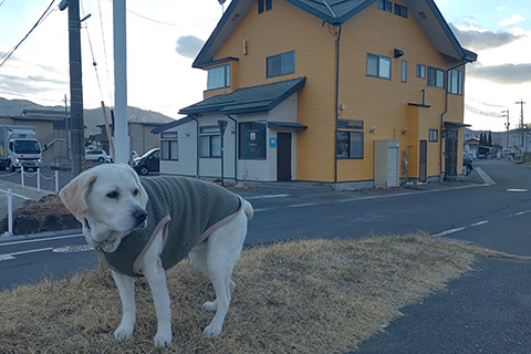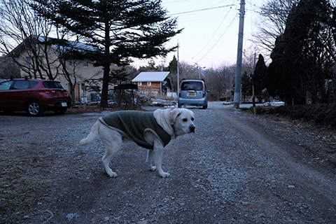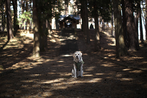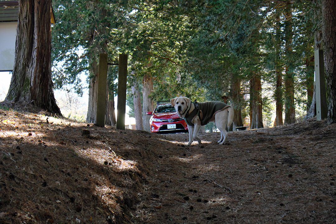午後から母とローリィを連れて買い物などに村へ下りるとすっかり春の陽気。洗車機、メガネ屋、富士見のJA、クロネコ、村のATM…途中、御射山社で散歩