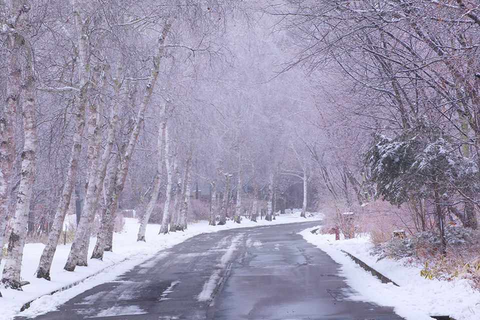 積もったー♪午後からさらに本降りのようだ。予報欄にダルマが並んでる☃