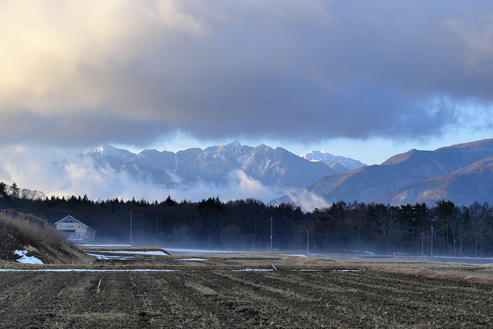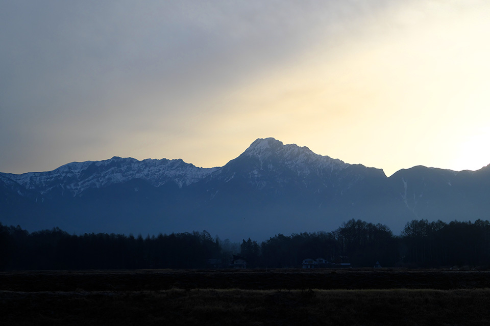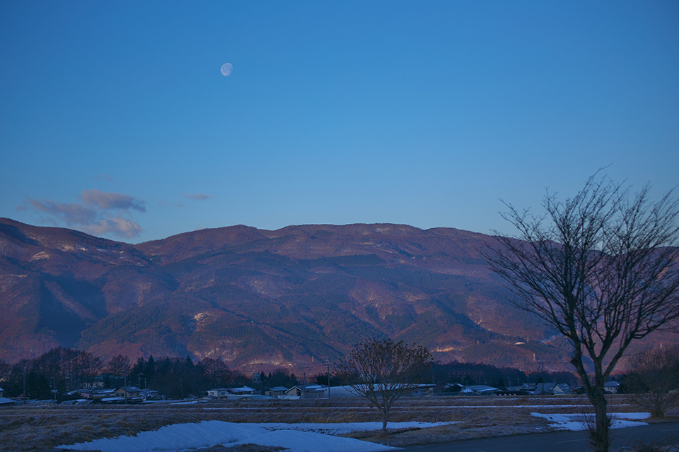 はがきを出しにたてしな農園のポストまで歩く。きれいな夕焼け。これで夜中からホントに雪になるんだろうか。