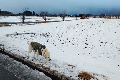 小雪模様の朝、気温はなんと0℃の暖かさ。ローリィと歩きながら、タローと東日本大震災の渦中にいた14年前を思う。東京でさえ未体験の激しい揺れに襲われボクらも帰宅難民となった。そして計画停電と余震や放射能汚染に怯えた日々の恐怖は忘れられない。それを体験していない中部地方以西の人たちとの温度差は致し方ないところだろう。記憶の風化が加速している。もしかしたら今ボクたちは後世に教訓を伝えられるかどうかの岐路に立っているのではないだろうか。もう一度、心に留め、遺さなければなければならない…防災のこと原発のこと。