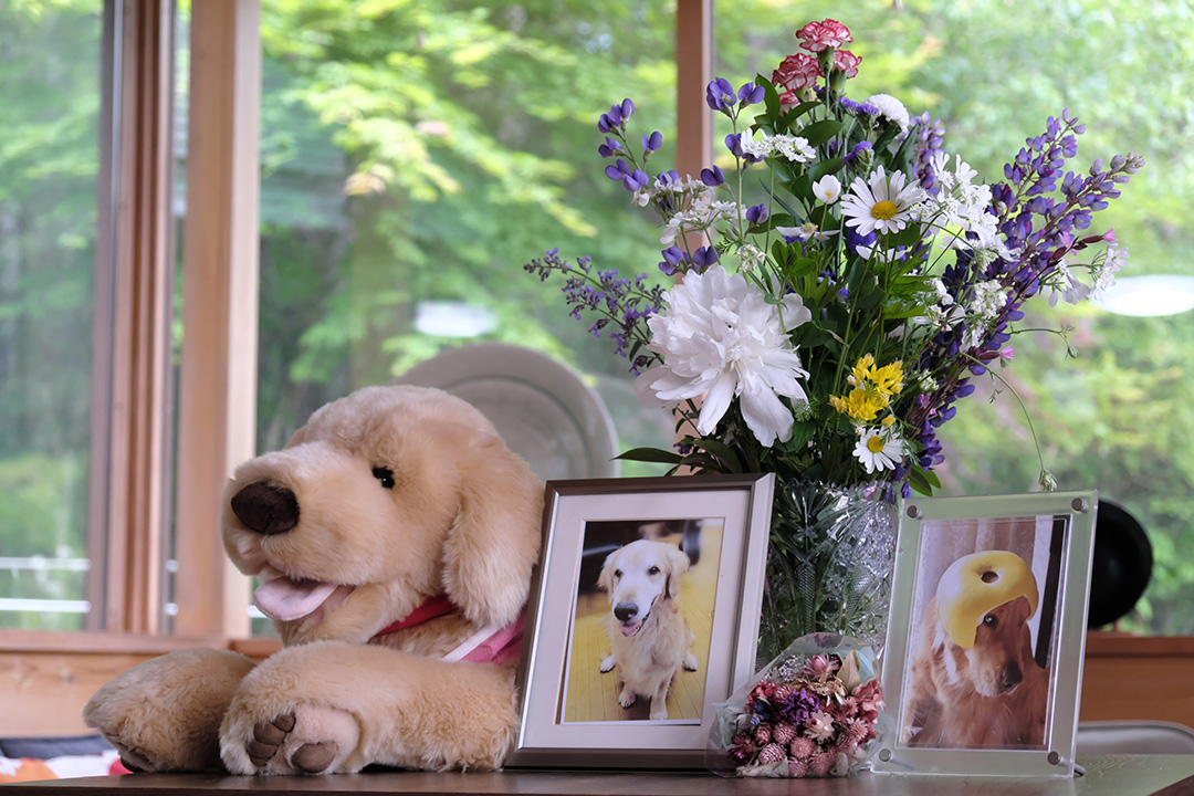 庭に咲く全種類の花を摘んで供えました