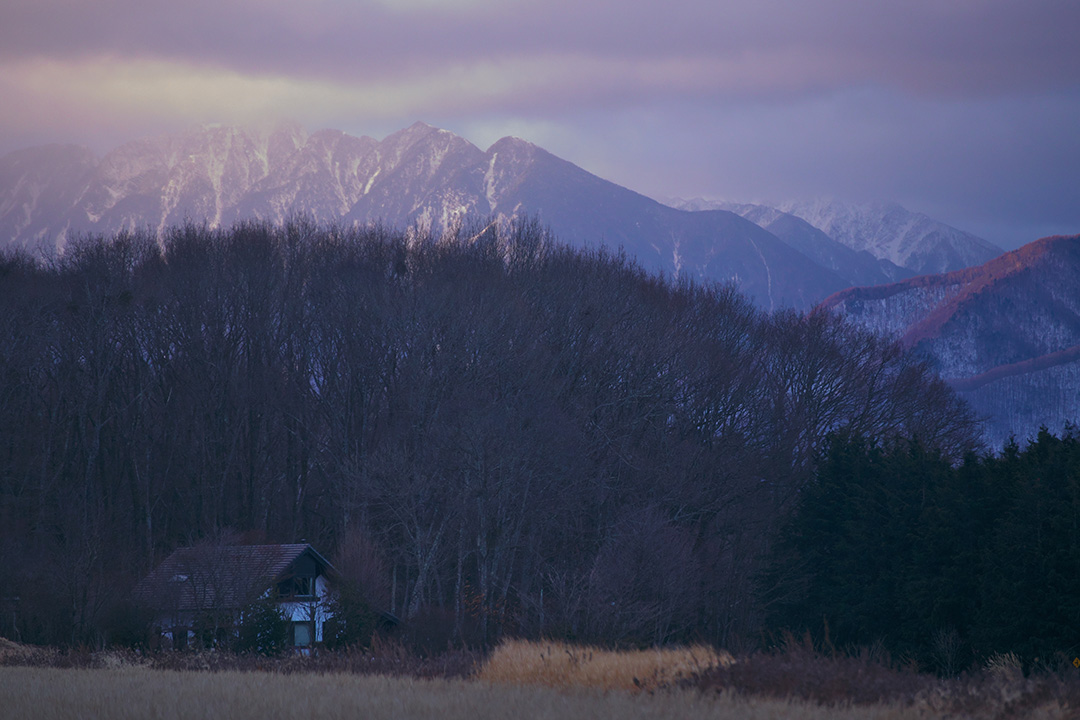 南アルプスと手前の家を300mmいっぱいで圧縮しました
