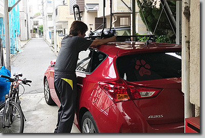足立の自動車パーツ屋に発注しておいたサイクルキャリアを取りに行く。こちらは新品。ボクの調べた限り最安値だった。取りに行けば送料もかからない。
