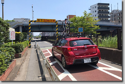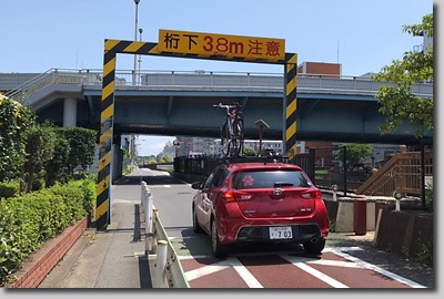 通勤帰りの深夜サイクリング計画のためにジャイアントを職場に運んだ。東京駅脇のJR高架下や小名木川沿いの道の橋の下の高さが心配だったので事前に確かめるとどちらも3.8Mだった。