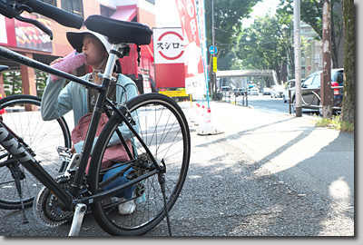 この日,東京の気温は早くも午前中に36度を超えた。帰宅したのは10時前。MN5(マジ熱中症5分前)!危険な真夏のサイクリング。