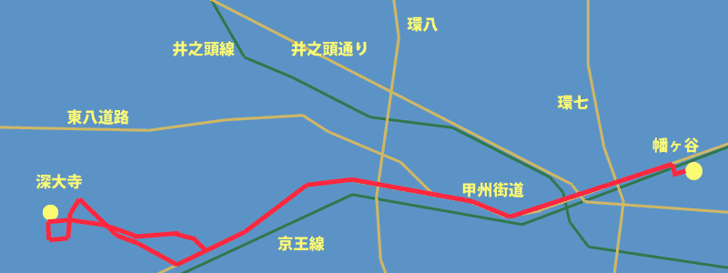 幡ヶ谷~深大寺往復 距離: 26.8km