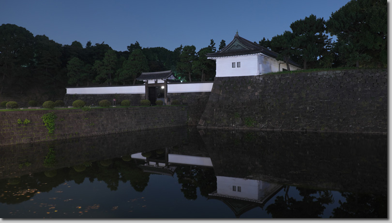 22時30分,皇居前広場でジャイアントとともに車を下りる。皇居周辺は自転車道路がよく整備されている。二重橋前から歩道を走って桜田濠沿いを時計回りに走る。