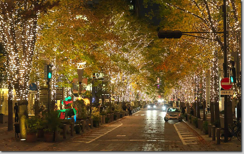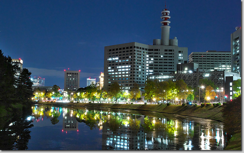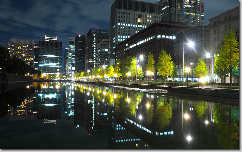 日比谷濠。この並木の夜の美しさはあまり知られていない。