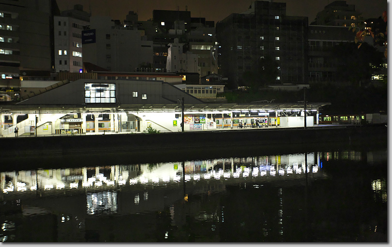 神田川が外堀を兼ねて整備されたのは江戸時代初期,将軍秀忠の頃。駿河台の掘割工事中に寺の境内から湧き出した泉を将軍御用達の茶の湯にしたことから御茶ノ水と呼ばれるようになった。この夜,ジャイアントを降ろした聖橋の北詰はその寺のあった付近である。