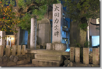 大相撲発祥の地は両国橋ではなく,ここ永代橋の東詰。元は火避け地の広場を利用した興行だった。