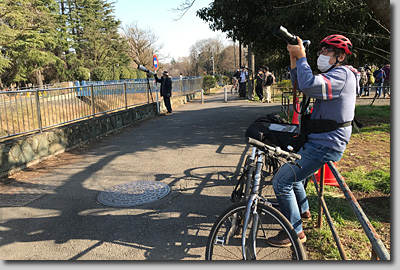 まこと都会とは思えぬ美しい水辺の道だが思いがけずいささか密である。陽気に誘われて近隣の住民がどっと散歩に繰り出してのこと,緊急事態宣言が続きコロナごもりを余儀なくされているから致し方ない。顔にフィットするマスクに換えて低いギアでそろそろと進む。