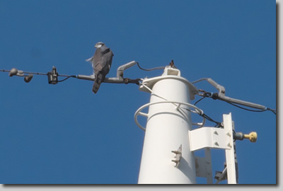 「オオタカが送電線のてっぺんに来ているんですよ。」