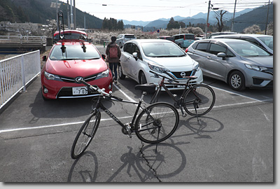 駐車場に戻って自転車を下ろした。駐車場の係員さんたちに手を振って見送られながらの賑々しい出発となった。