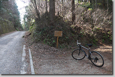 山枝庵の手前で文字通り峠を越え下り坂になった。すいすい自転車で下れたかと言うとさにあらず。砂利道にタイヤが滑ってブレーキがかけられない。クロスバイクではオフロードを下れないことを知る。