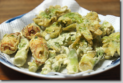 休日の晩餐は龍穏寺のあの無人販売所で買ったふきのとうとタラの芽の天ぷらである。