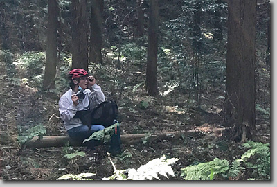 「それならこっちでいいが,何も残ってないぞ。あの辺まで登らにゃあならん。」