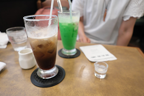 アイスコーヒーとクリームソーダなんか注文しちゃって…。