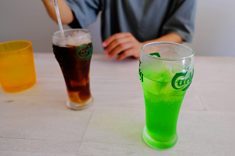 コンビニでペットボトル飲料を購入。ボクは後味を重視して,砂糖の入っていないお茶を希望したが,ドレミは塩分糖分を補給できるスポーツ飲料の有効性を主張する。