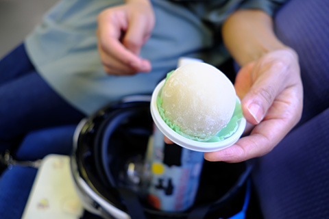 ドレミは神社に向かうときすでにみかん大福に目をつけていたらしい。