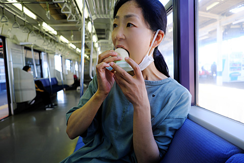 昼過ぎの上り列車,ボクらを含めて一両に5人しか乗客はない。お行儀悪いけどお許しくだされ。