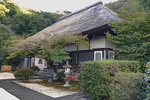 だが,ふと脇に建っていた茅葺屋根の建物に興味を持ったのが敗因だった。1789(寛政元)年建立の旧本堂である。写真に収めて,急ぎ現本堂に向かったが時すでに遅し,6人分のチケットを持ったMiちゃんと案内役のイングリッシュ僧侶が石段の上で待っていた。借りが膨らんだ。