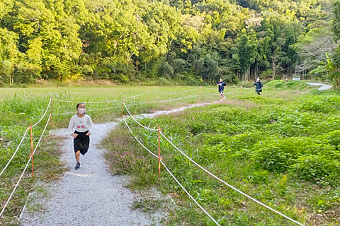 願成就院を辞してさらに300M足らずを北に行くと「北条の里散歩路」が整備されている。もう子どもたちは体力余って自転車の前に後ろに走っている。