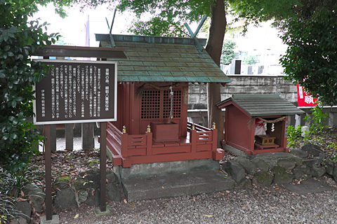 境内には二人を祀った小さな祠がある。