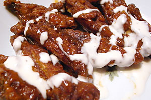 このままでもビールに合いそうだが,天才クッカーとしては少々納得がいかない。チリパウダーがボールに随分と余っている。勿体ないのでトマトケチャップとタバスコを加えてテフロンのフライパンで加熱し,肉を入れてあおると,しっとり絶妙な仕上がりになった。たぶんこれって,ほとんどバッファローウイング。