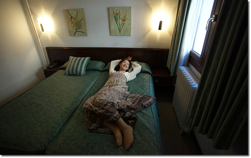 こんな熱海か箱根のような観光地で宿を取るなんて,ボクたちの旅ではかなり意外な展開です。メインストリートに戻り,最初に目についたのはその名も「ホテル・ピレネー」,三ツ星です。